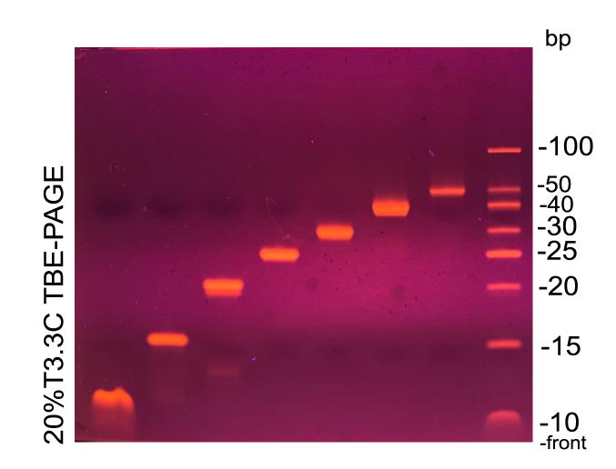 本產品為雙鏈DNA Marker,適用于非變性的PAGE電泳和瓊脂糖凝膠電泳,不適用于尿素PAGE電泳。由于片段很小,不建議用瓊脂糖凝膠電泳分離。
