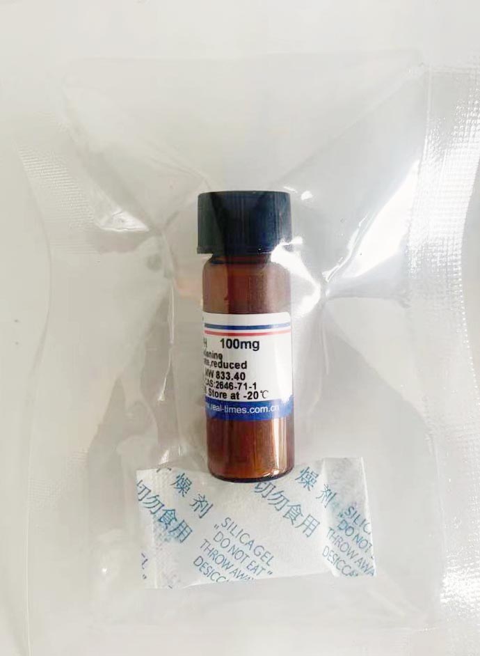 含有25 mg NADPH粉末玻璃瓶中加入0.5 ml或1 ml 10 mM Tris-HCl pH8.0,徹底溶解,即配成50 mg/ml(60 mM)或25 mg/ml(30 mM) NADPH溶液;溶液-20℃可以貯存2周,-80℃可以貯存2個月。可以根據(jù)需要適量分裝成小管-80℃貯存,每次取一管使用,避免污染和減少凍融次數(shù)。