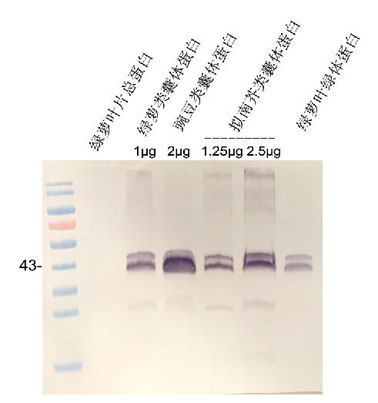 檢測到兩個條帶,大小43和45kD
