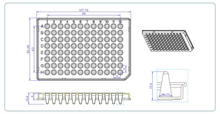 These plates are designed for PCR and qPCR applications and specifically to fit Roche LightCycler ® 480 systems. These plates fits also most (q)PCR cycler models which accept low profile (LP) products. For qPCR we recommend the use of frosted products or white products.