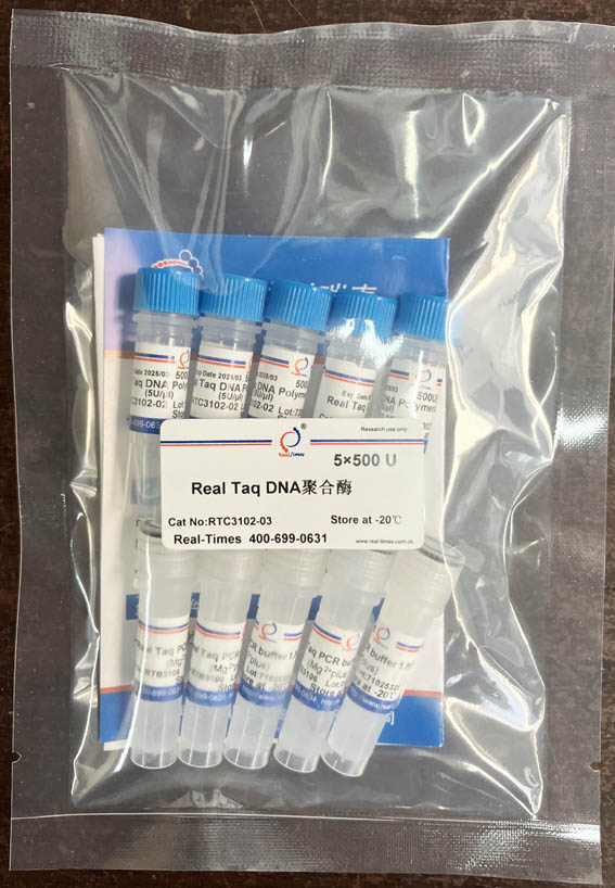 1單位(U) Real Taq DNA Polymerase活力定義為在74℃、30分鐘內(nèi),以活性化的大馬哈魚精子DNA作為模板/引物,將10 nmol脫氧核苷酸摻入到酸不溶物質(zhì)所需的酶量。