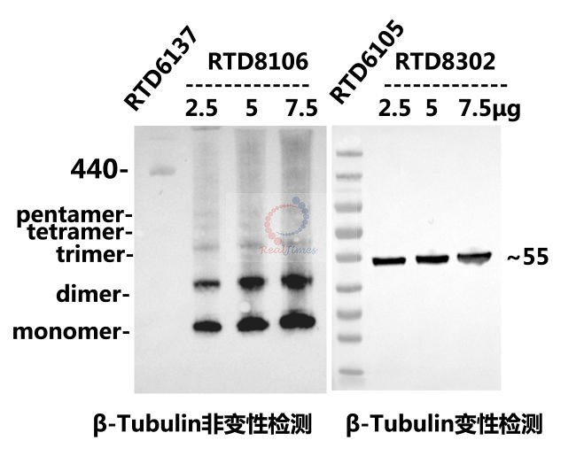 1 β-Tubulin可以作為Tris-甘氨酸非變性系統(tǒng)的對照,結(jié)果為多種聚體。