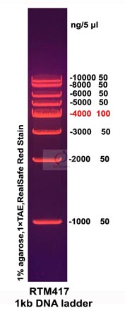 buffer,可根據實驗需要,直接取2-5μl電泳,使用方便,電泳圖像清晰。本產品中8條帶分為1000(50