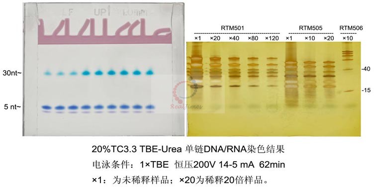 for Nucleic Acids)是一種快速簡單、可用于聚丙烯酰胺凝膠中的核酸檢測的試劑盒。該方法檢測靈敏度比 EB 高達 200 倍,能檢測到10ng的 DNA條帶,常用于檢測 SSR 標記、SNP 標記等。