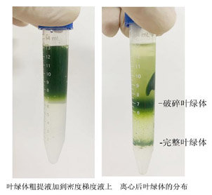 實(shí)驗(yàn)前1-2天將植物放在暗室培養(yǎng)以減少葉綠體中淀粉顆粒的形成,否則離心時(shí)這些顆粒很容易使葉綠體破裂。葉片在實(shí)驗(yàn)前需先用自來水洗凈,再用蒸餾水淋洗,去掉多余水分。如果葉片采集后不能立即處理,則保存時(shí)需要保持葉片濕潤,即使如此,葉片采集后的放置時(shí)間也不能超過一天。