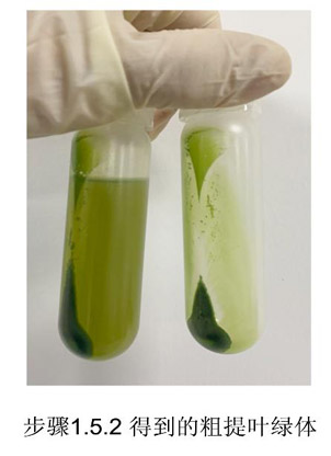 1.6.1.4 小心棄上清,保留沉淀,每管沉淀中加入1 ml 葉綠體重懸液,輕柔重懸,可以收集到2 ml完整葉綠體溶液。