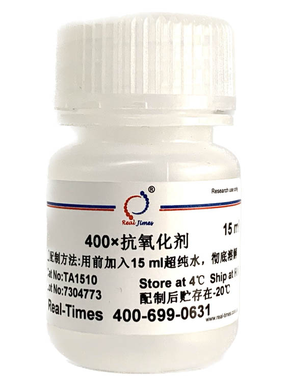 400×抗氧化劑為干粉,用前加入15 ml超純水震蕩徹底溶解后使用,已經溶解的400×抗氧化劑-20℃貯存。